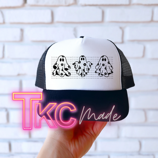 Floral ghosts trucker hat-Please tell me if you want black or white ghosts