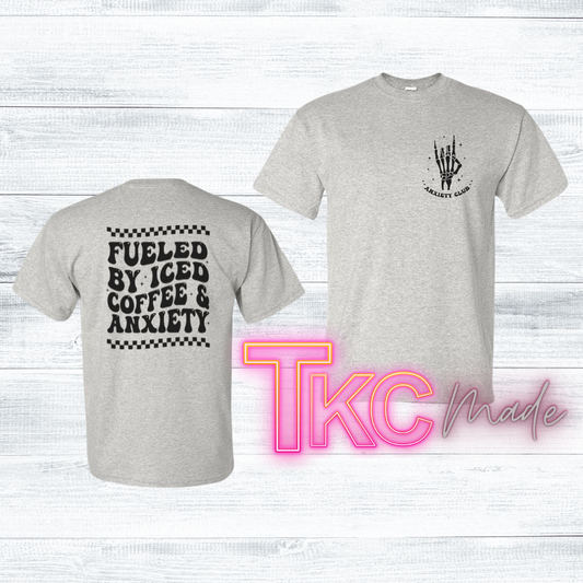 Fueled by Iced Coffee and Anxiety Pocket and back design