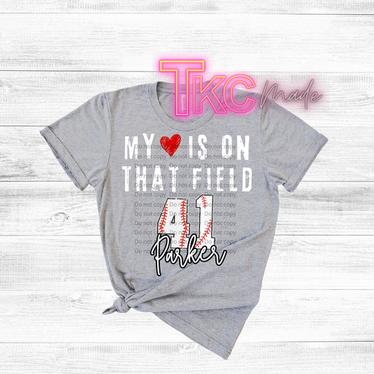 Custom Baseball My heart is on that field - player name and numbers